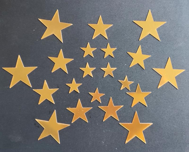 Зеркальные наклейки пластиковые звезды от 3,2 до 6,5 см 20 шт набор Б336 размеры: 6шт ―6,5 см 7шт ― 5 см 7шт - 3,2 см