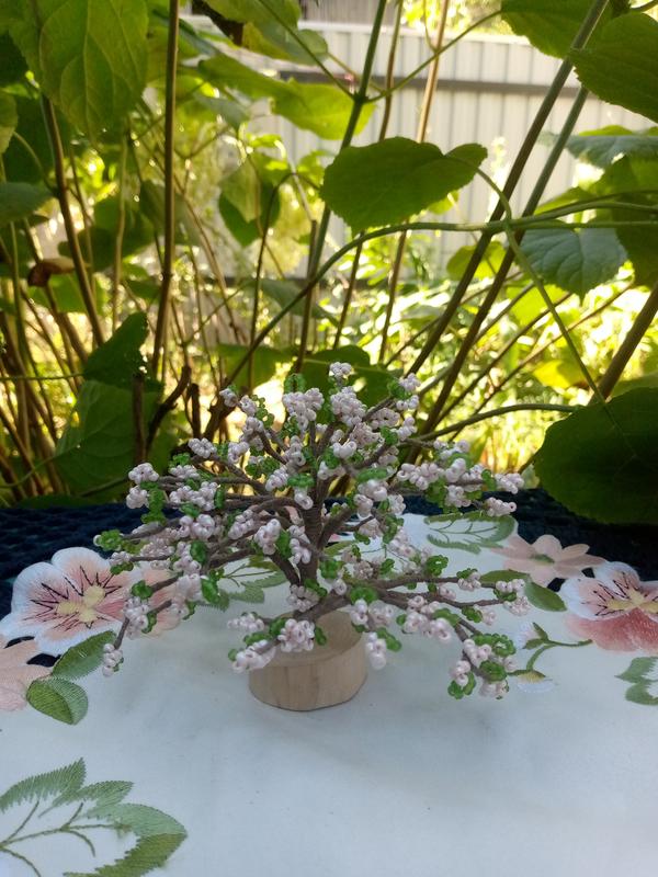 дерево из бисера с гибкими ветвями на деревянной подставке высотой 10см