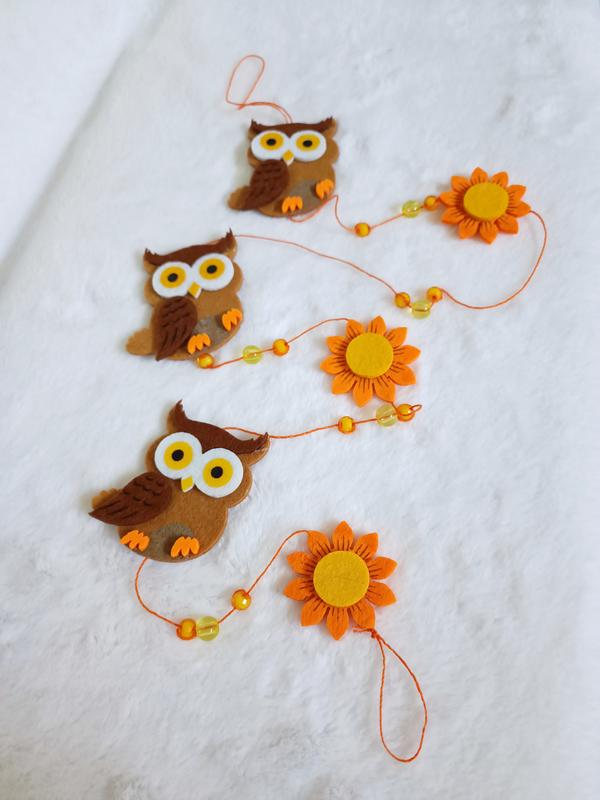 Подвесное осенье украшение в виде совы. из фетра