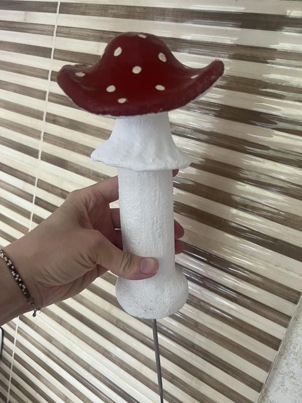 Гриби із гіпсу на металевій ніжці для декору, прикраси та ваших втілень У наявності три одиниці великих мухоморів, довжина гриба 25 см, металева ніжка 16 см, шляпка діаметром 13 см та 15 см, 500 грн за одиницю