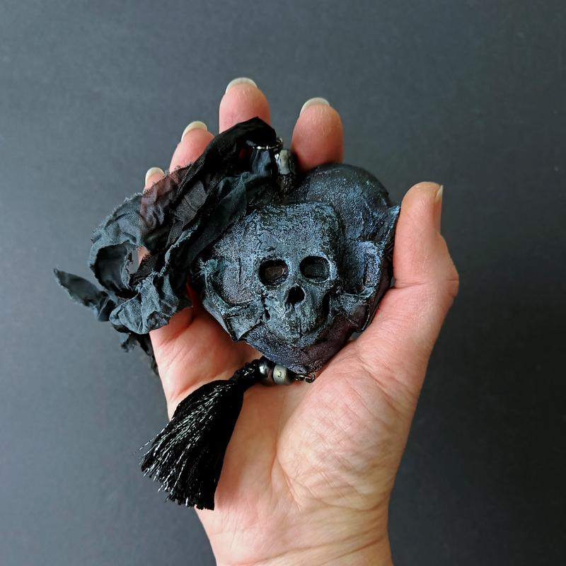 Это Готкое декоративное сердце станет особым украшением вашего дома. Подойдет для создания готического настроения на Halloween. Станет отличным подарком для ценителей темной эстетики. Основа украшения изготовлена из пластика и имеет размер 8х8 см. Сердце изготовлено из пластика, покрыто текстурной пастой, гипсовым декором и окрашено акриловой краской. Также можно использовать как елочную игрушку. *** Я знаю, как сильно вы хотите получить свой заказ как можно быстрее, поэтому я отправляю его быстро, но я несу ответственность за перевозчика. Вы также можете приобрести готические блокноты в своем магазине. Благодарю за посещение нашего магазина.