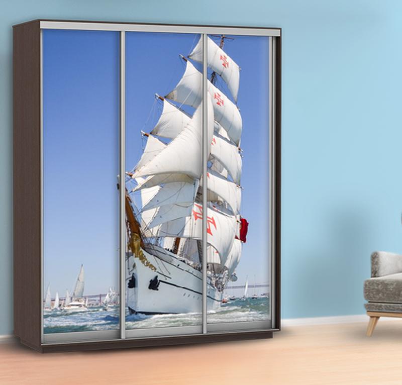 Наклейка для шкафа корабль (защитная самоклейка море) 240 х 100 см с защитной ламинацией