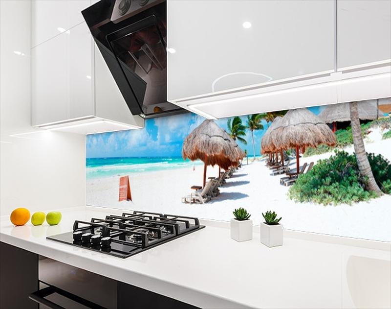 Кухонный фартук заменитель стекла гавайский пляж, с двухсторонним скотчем 62 х 205 см, 1,2...