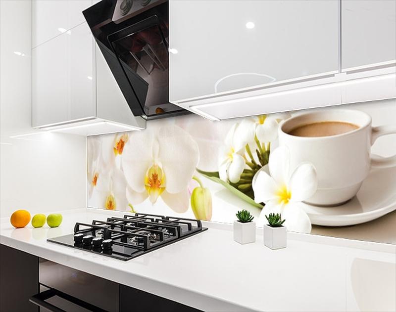 Кухонный фартук заменитель стекла орхидеи с кофе, с двухсторонним скотчем 62 х 205 см, 1,2...