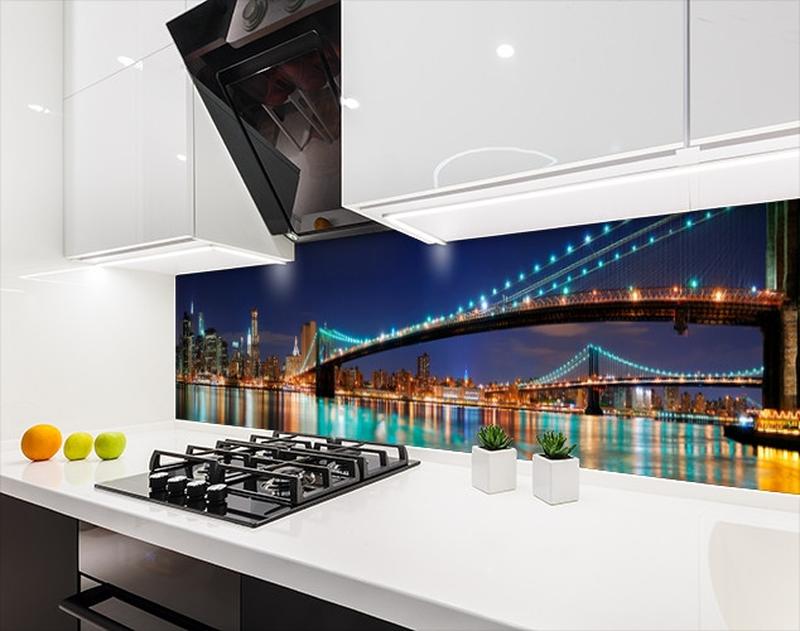Кухонный фартук заменитель стекла с видом на бруклинский мост в закате, с двухсторонним ск...