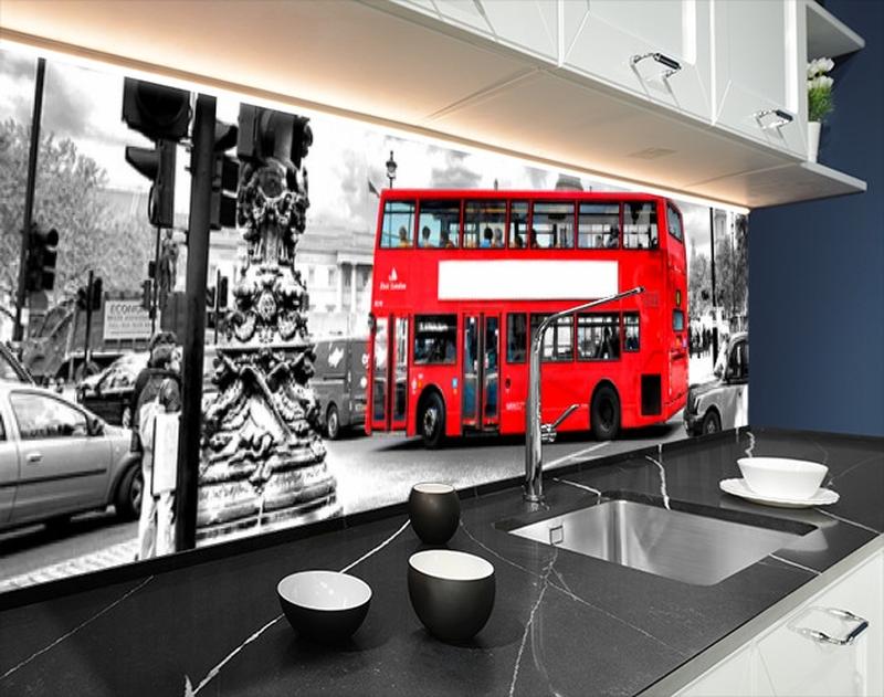 Панели на кухонный фартук пэт автобус двухэтажный, с двухсторонним скотчем 62 х 205 см, 1,...