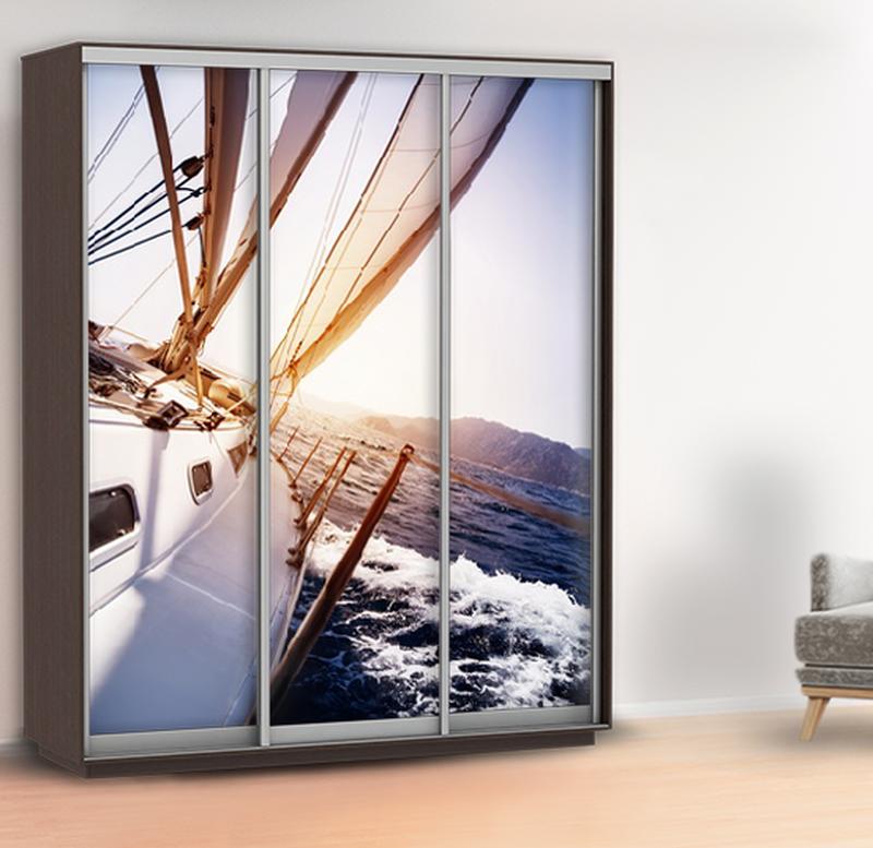 Наклейка с яхтой в детскую на шкаф, двери, стены 240 х 100 см с защитной ламинацией