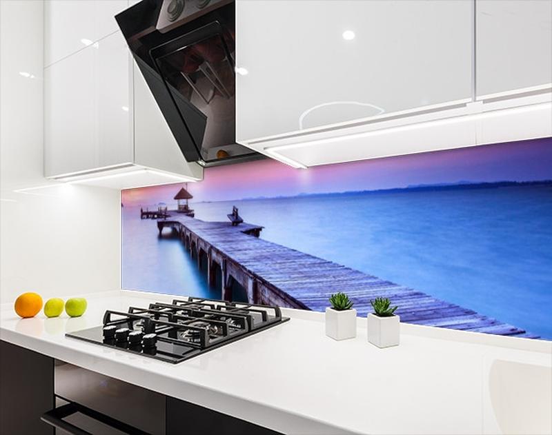 Кухонный фартук заменитель стекла с причалом у моря, с двухсторонним скотчем 62 х 205 см,...