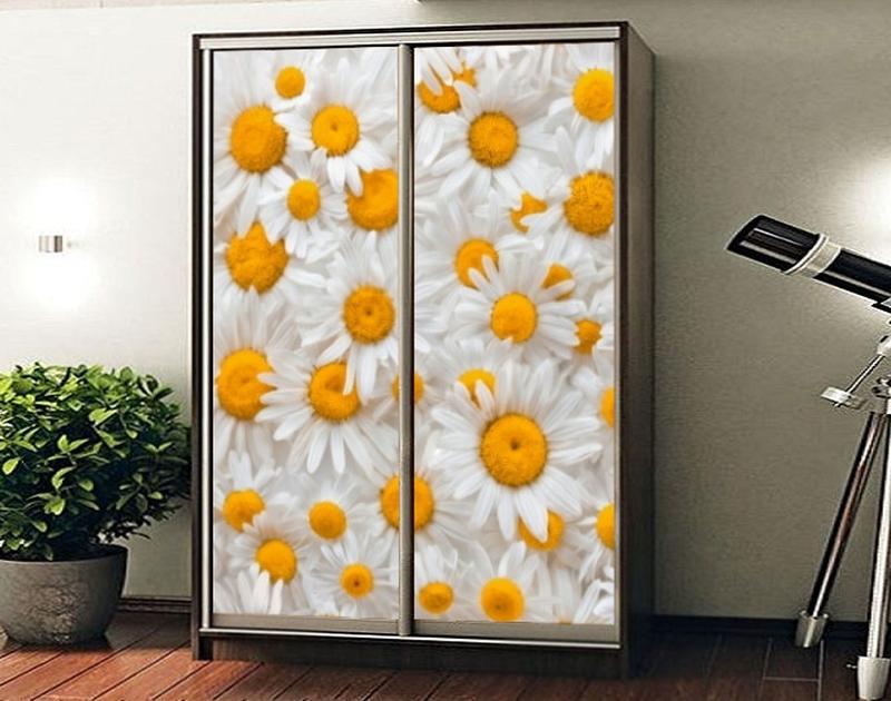 Наклейка на шкаф-купе 220 х 74 см на 2 двери ромашки (бп_а_fl13423)