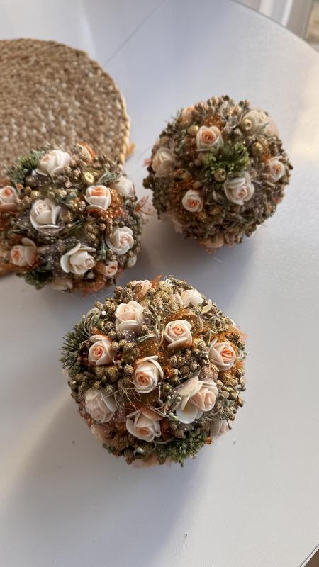 Декоративні шари для ялинки або інтер’єру Продам набір із 3 декоративних шарів — легкі та ніжні Основа з пінопласту, зверху декор: трішки блиску, зеленa сизаль, квіти. Підійдуть як прикраса на ялинку, на стіну чи в інтер’єр кімнати — створюють теплу, домашню атмосферу. Ціна за комплект із 3 шт — 300 грн. Розмір можна побачити на фото (орієнтуйтесь по лінійці). Виглядають дуже ніжно та додають затишку будь-якому простору.