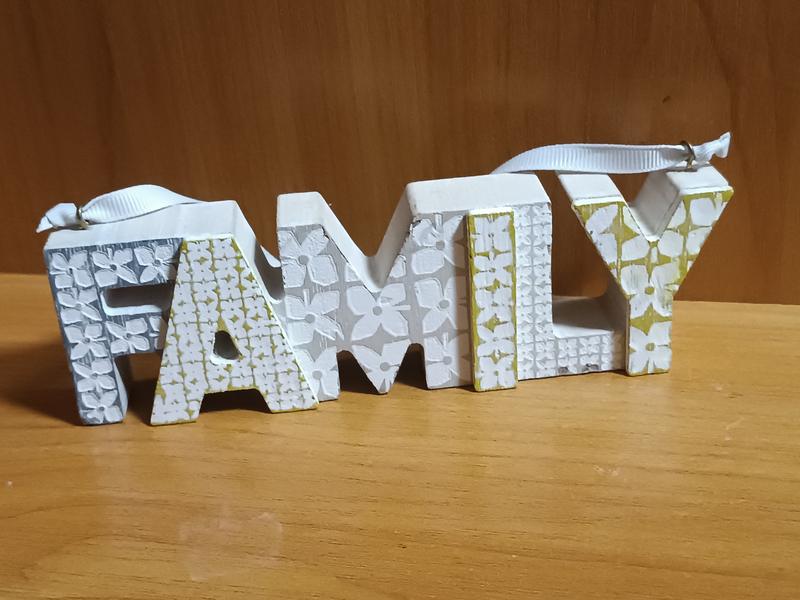 --- 🏡 Декор "FAMILY" из Англии — теплая атмосфера в вашем доме Размер: 16×5×2 см Материал: плотный декорированный композит (дерево/МДФ) Цвета: белый, желтый, серый, флористический орнамент Крепление: белая лента для подвешивания Происхождение: привезено из Англии 💛 Стильный настенный декор с надписью FAMILY - идеальный акцент для уюта. Каждая буква украшена нежным флористическим узором, что добавляет шарма и символизирует тепло семейной цепи. Подойдет для прихожей, кухни, детской или в качестве подарка.