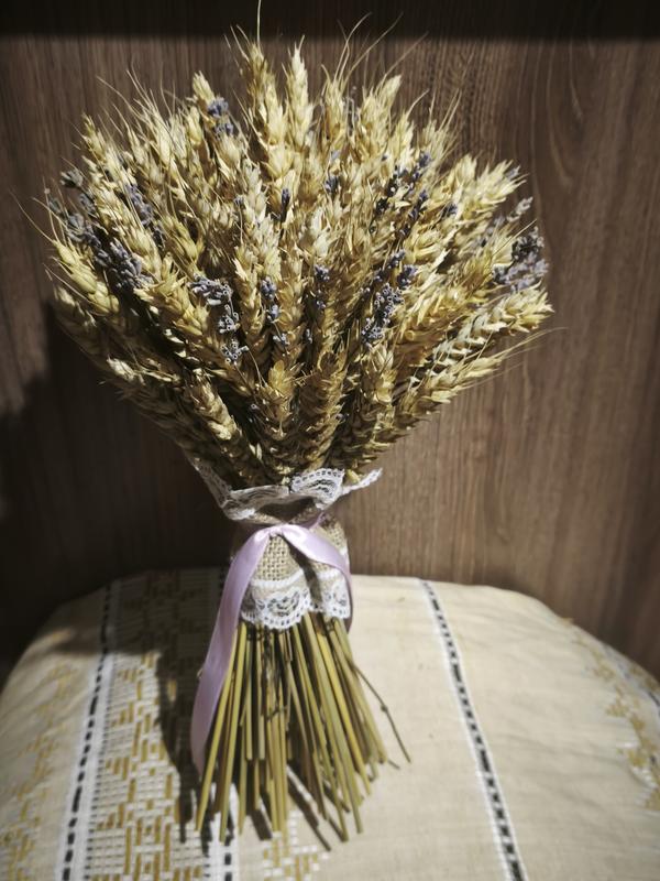 высота: 35 см Дедух с лавандой: символ традиции и современной эстетики Дедух – это древний украинский предохраняющий и символ благополучия, традиционно изготавливаемый из первого или последнего снопа жита, пшеницы или овса. Он олицетворяет память о предков, связь с землей и пожелания мира и изобилия в доме. В современных интерпретациях дедушек не теряет своего сакрального содержания, но часто дополняется новыми декоративными элементами – в том числе лавандой. Сочетание традиции и нежного аромата Добавление лаванды в дедши придает ему: Нежнейшего, успокаивающего аромата, наполняющего дом уютом; Изысканного лилового акцента, который гармонирует с естественными золотистыми цветами колоски; Символического содержания, ведь лаванда считается растением мира, очищения и гармонии. Символика дедуха с лавандой Дедух сохраняет традиционный смысл: поклонство предков, щедрость года и охрана дома. Лаванда добавляет значения чистоты мыслей, душевного спокойствия и блаженства. Вместе они создают защиту, которая одновременно укоренена в традиции и открыта к современному стилю. Современный декор с глубоким смыслом Такой дедух стал популярным в новейших украинских домах: он выглядит нежно, стильно и может быть центральным украшением к Рождественству или Новому году.