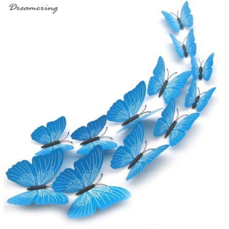 Бабочки синие на магнитах - в наборе 12шт. разніх размеров, пластик