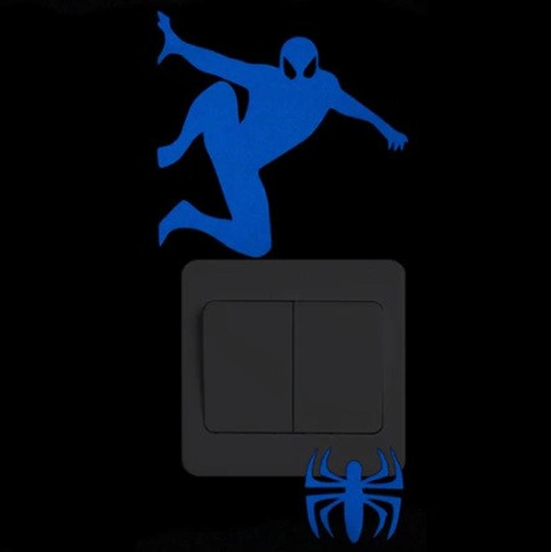 Светящаяся наклейка "Человек Паук". Цвет: голубой. Размер: 10*10см. Материал: ПЭТ. Все виды фосфорных наклеек Вы можете посмотреть здесь: Создать сказочную уютную атмосферу в спальне или в детской комнате помогут наклейки, светящиеся в темноте. Такой декор доступный и недорогой, зато впечатление, которое он производит, превышает всякие ожидания. Однозначно стоит попробовать использовать эти наклейки для украшения своего дома. Люминесцентные краски в сегодняшнее время, несмотря на распространенное заблуждение, абсолютно безопасны для здоровья. Поэтому не бойтесь покупать светящиеся наклейки в детскую комнату. В большинстве своем, светящиеся краски для виниловых наклеек – это фотолюминофоры, то есть вещества, способные накапливать энергию светового излучения и отдавать ее после прекращения светового воздействия.