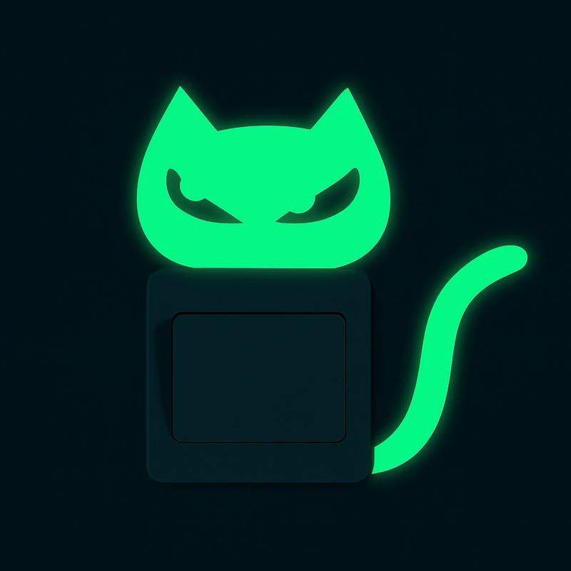 Фосфорная наклейка кот 12 на 12 см салатовый