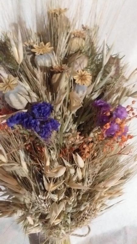Букет из сухих растений: коллоски ржи, овса, коробочки мака, с добавлением нигеллы, кермека и гипсофилы Высота около 30 см Может быть выполнен под заказ