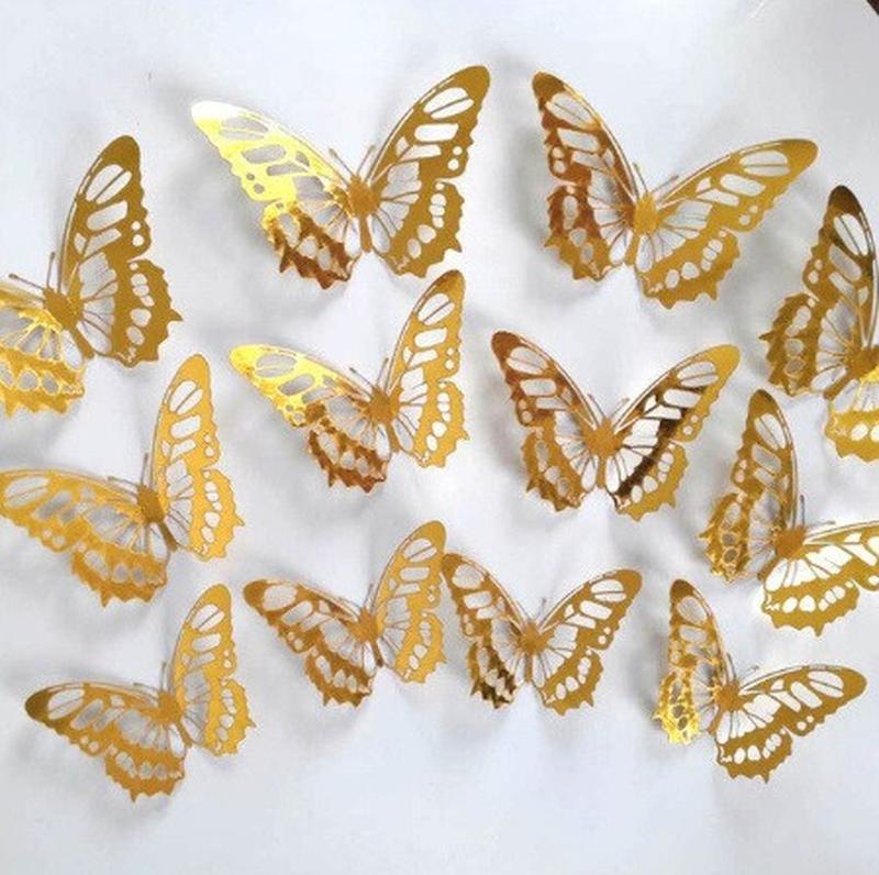Бабочки золотистые на скотче - 12шт. в наборе, так же есть 2-х стронний скотч в наборе