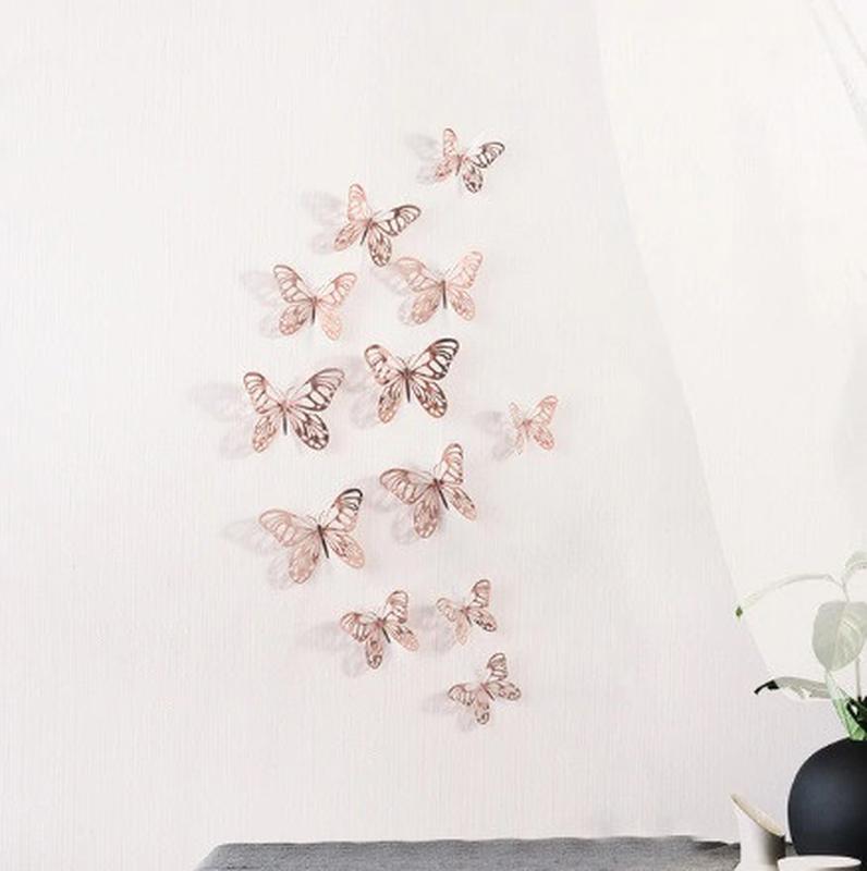 Декор метелики, на скотчі, рожеве золото, в наборі 12штук різних розмірів, пластик