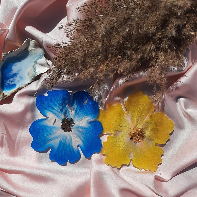 Подстаканники из эпоксидной смолы в виде цветов ручной работы, цвета флага украины