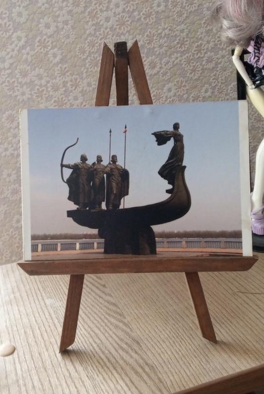 Настільний мольберт прикрасить будь-який стіл або поличку дома та в офісі, має триногу заввишки 21 см, фотографія з відомим пам‘ятником Києва на якій засновник Києва - Кий з братами та сестрою, фотографія 10*15 см, можна також розмістити свою, є мольберти без фото, ціна за один
