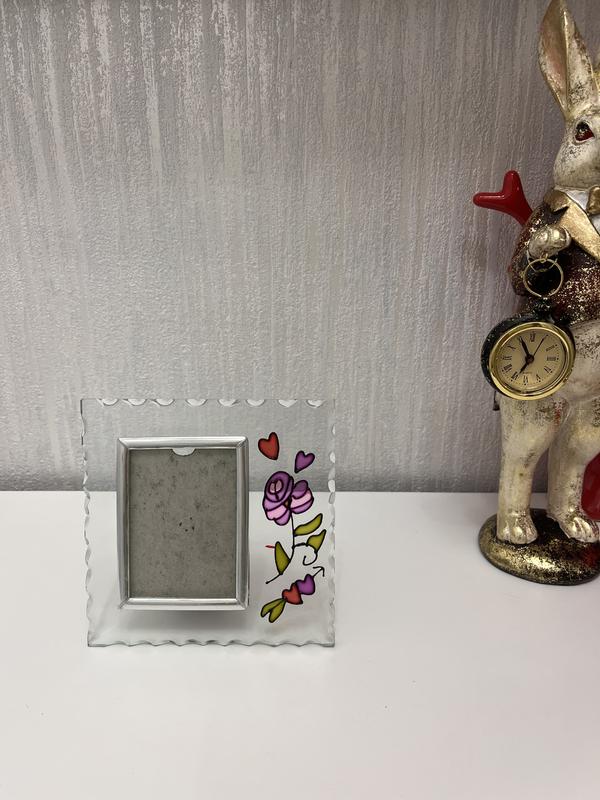 Рамка стеклянная с цветными росписью.Комповали в Венецике в качестве венецианского стекла.Подойдет на День валентина.