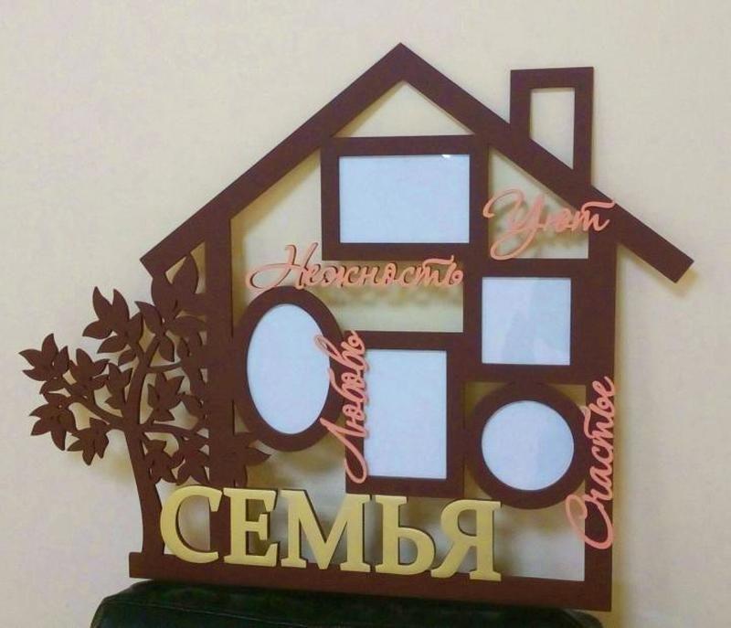 Фоторамка "семья" в виде домика из дерева 64х60 см.