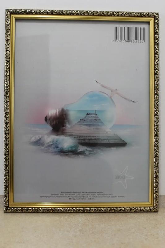 Продаж пластиковых фоторамок размером 30х40 см. оптом и в розницу от производителя. Фоторамка комплектуется следующим образом: 1) Защитный экран: оргстекло-прозрачная пленка 0,2 мм., или стекло толщиной 1,5 мм. 2) Задняя стенка: ДВП без подставки на стол, подставка на стол +10 грн. 3) Подвес: один навесной, 4) Количество подвесов: один, 5) Защитная пленка от царапин: 6) Вкладыш: с вкладышем, Для подбора нужной вам комбинации воспользуйтесь менеджером Доставка по Украине только по Новой почте.