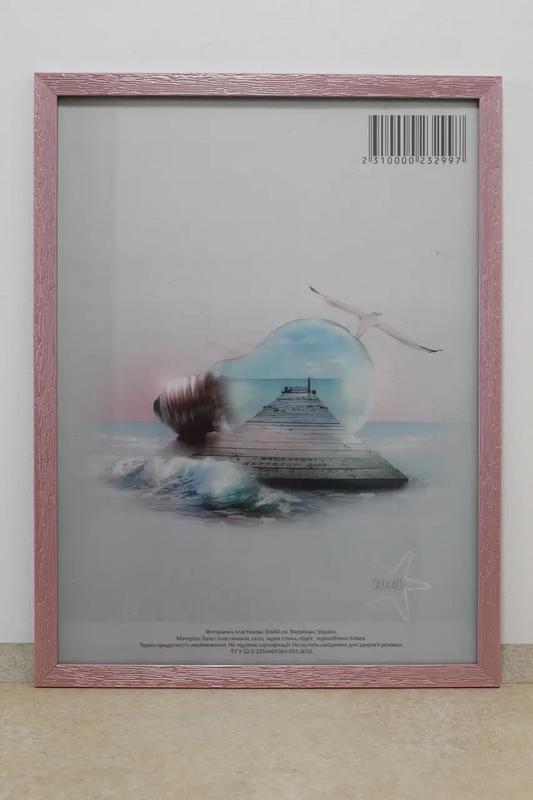 Продаж пластиковых фоторамок размером 30х40 см. оптом и в розницу от производителя. Фоторамка комплектуется следующим образом: 1) Защитный экран: оргстекло-прозрачная пленка 0,2 мм., или стекло толщиной 1,5 мм. 2) Задняя стенка: ДВП без подставки на стол, подставка на стол +10 грн. 3) Подвес: один навесной, 4) Количество подвесов: один, 5) Защитная пленка от царапин: 6) Вкладыш: с вкладышем, Для подбора нужной вам комбинации воспользуйтесь менеджером Доставка по Украине только по Новой почте.