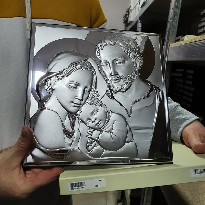 Икона серебряная святое семейство мария и иосиф с младенцем