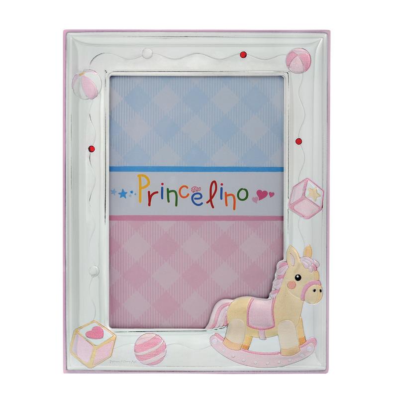 Эксклюзивная серебряная рамка для детских фотографий - это уникальный и очень красивый подарок для любимого ребёнка. На серебряном окладе бывают инкрустированы изображены детской тематики, например, аист, несущий ребенка, детская коляска или медвежонок, которые придают изделию более впечатляющий вид. Основания, где закреплена рамка, окрашена в розовый цвет, который подчеркивает назначения подарка - для девочки. Некоторые части фоторамки разрисованы цветной эмалью, которая делает тематические изображения более живыми . Все элементы, из которых сделано изделия, объединены между собой в одном сюжете и имеют продуманную форму композиции, которая делает из на первый взгляд, простой фоторамки - уникальный ценный подарок для ребенка, который будет сохранять счастливые моменты жизни. Материалы: * Серебряный оклад изготовлен из штампованного серебряного листа 925 пробы который закреплен на алюминиевую основу для придания ему большей прочности; * Разноцветное покрытия - ювелирная эмаль; * Основания - МФД покрытый шпоном ореха покрашено в розовый цвет; * Упаковка - оригинальная подарочная детская коробочка и мешочек; Характеристики: * Размер фото для рамки : 6x9 см * Размер рамки : 10x13см * Ширина рамки: 2см; * Производитель: Prince Silvero (Греция) - Серия детских подарков Princesino; * Назначения: для ребенка - девочки; * Цветовая тематика: розовая;