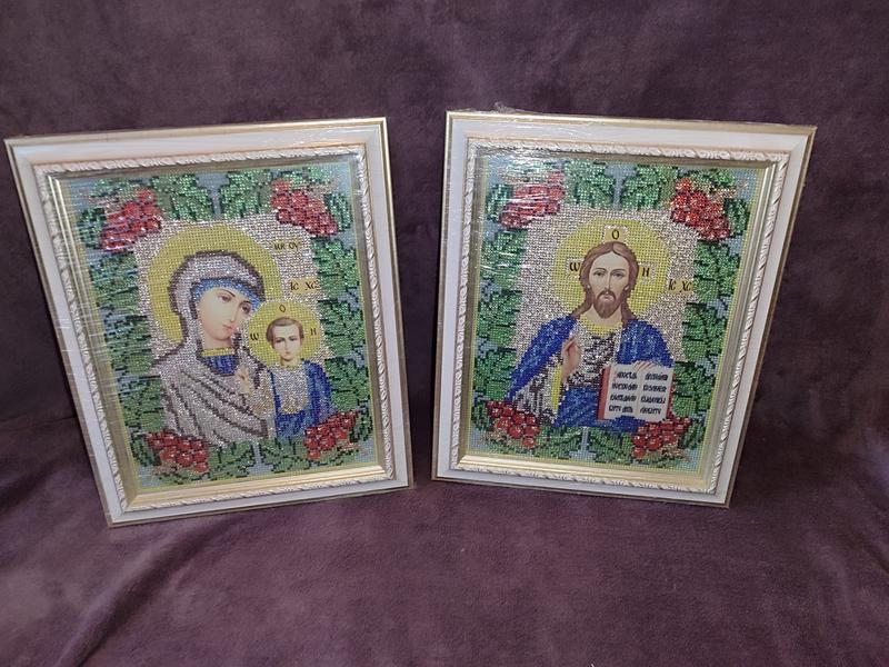 Пара икон выложена стразами, ручной работы, в рамке, новые. Цена указана за 1 шт.
