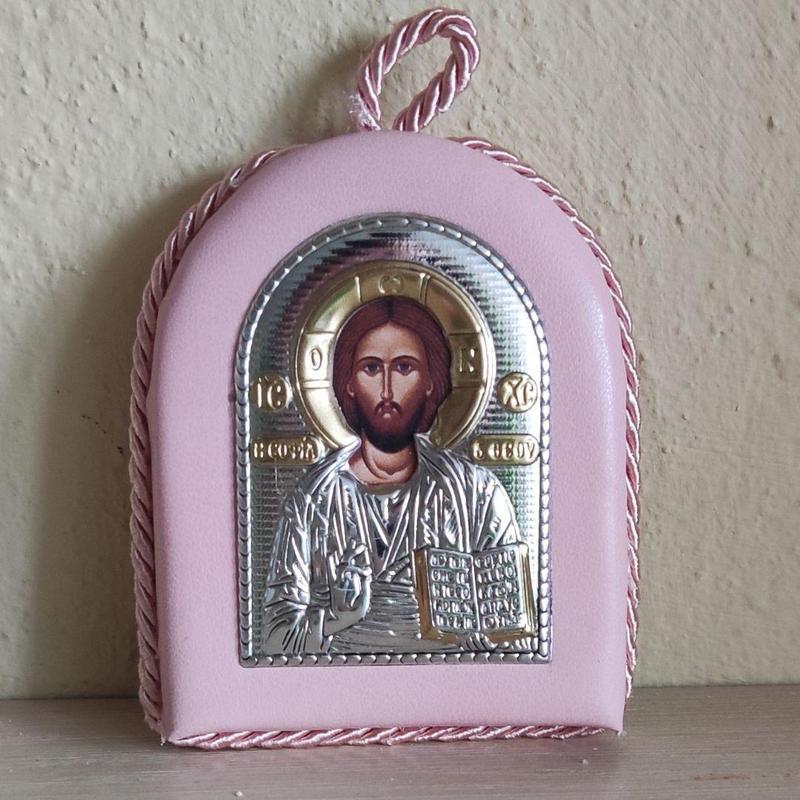 Грецька ікона обтягнута шкірою рожевого кольору silver axion ісус христос ep1-001ipg/a/p-p...