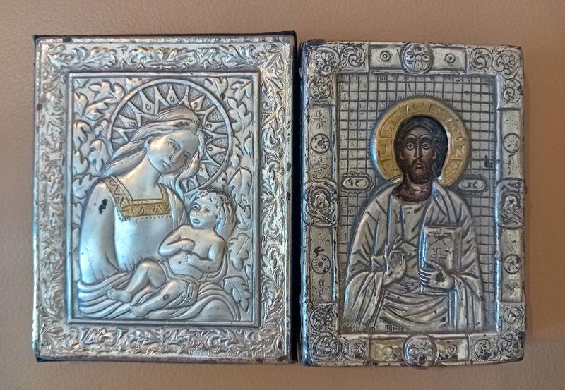 серебряные иконы,стан как на фото, Неаполь. размеры: 9*11 см и 7,5*11 см