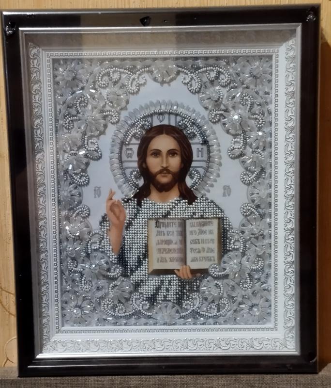 Продам венчальные иконы парные. Иконы вышиты вручную с помощью бисера, бусин и хрусталиков. Оформлены в шикарные двойные рамки под стеклом. Размер в рамках 26*31см.. Идеальный вариант для венчания или на Цена за пару 5800. Пересылка по Украине новой или укр. Поштой.