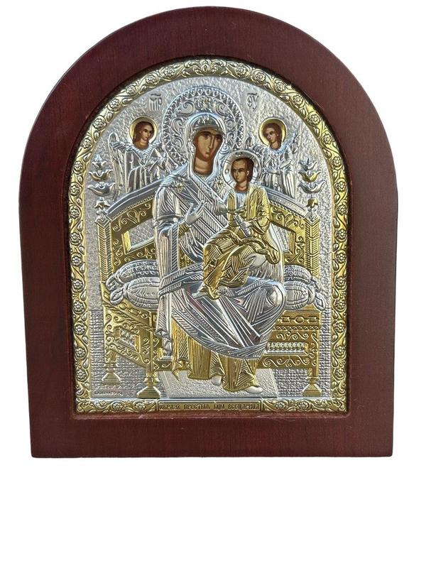 Икона Божия Матерь Всецарица Серебро 925 проба. Основание: МДФ. Размеры 11*13 см EK-041XAG