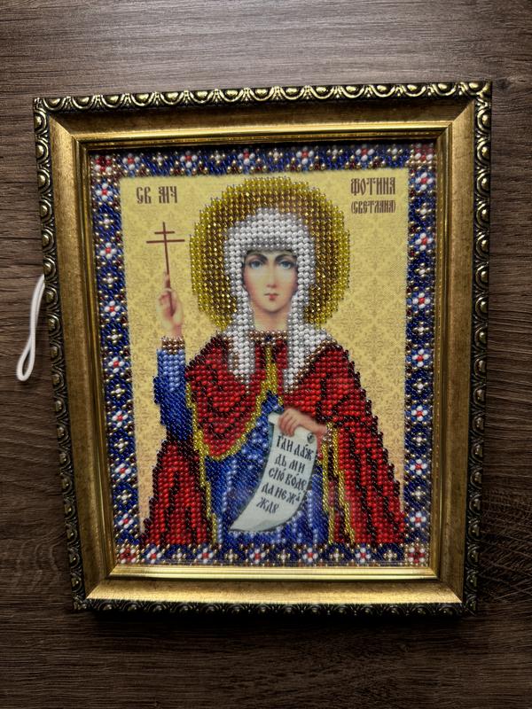 Ікона вишита бісером ручна робота Св Мч Фотина (Світлана). Розмір 15*19.