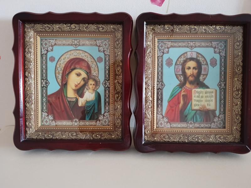 парные иконы в темной деревянной рамке:высота 29см,шир.26см,цена за одну
