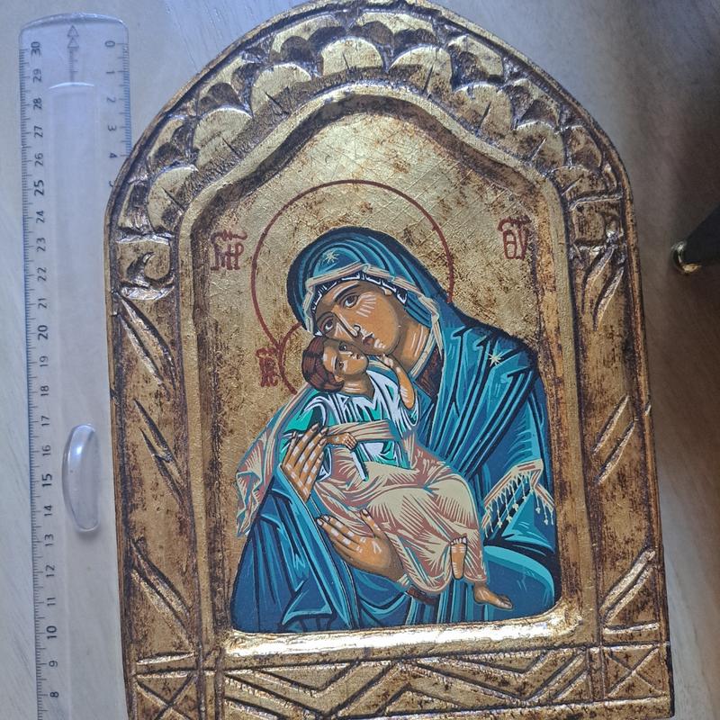 Икона богоматери с младенцем, выполненная вручную по традиции