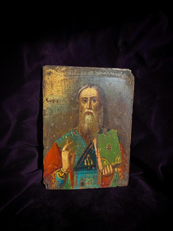 Старовинна ікона Святого Миколи Чудотворця. Орієнтовно кінець 18 століття початок 19 століття. Проводилась консервація, щоб зупинити подальші втрати пігменту але зберегти антикварний вигляд. Висота - 17 см, ширина- 12 см