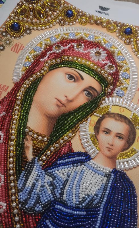 икона вышита бисером и бусинами. размер 19×23. без рамки