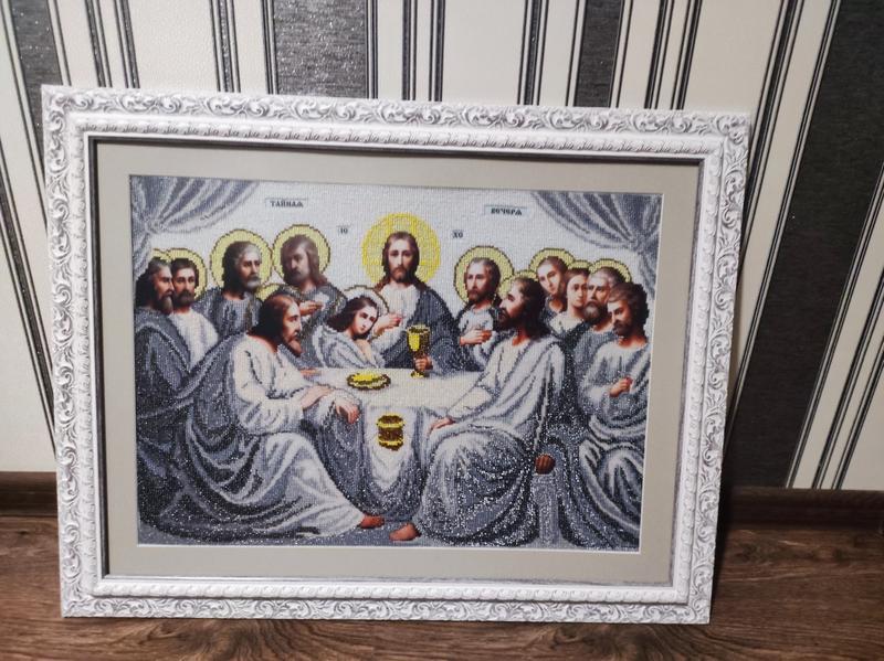 образ тайная ужин вышит чешским бисером, которая представлена в качественную рамку,стекло антиблик.Размер готовой 69*54см.