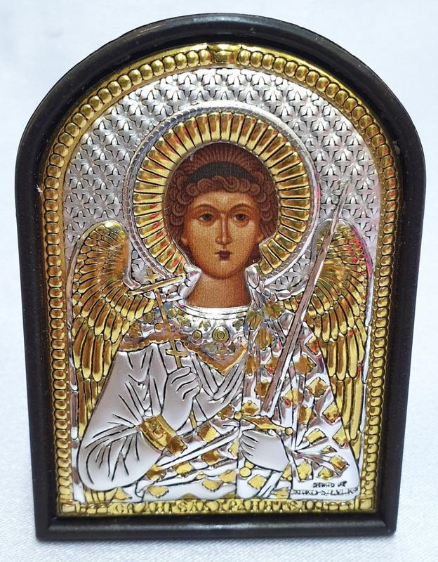 Икона с посеребрением "Ангел Хранитель". Вставки: посеребрение, позолота. Размеры: ширина - 4,5 см; длина - 6,5 см. Арт 250