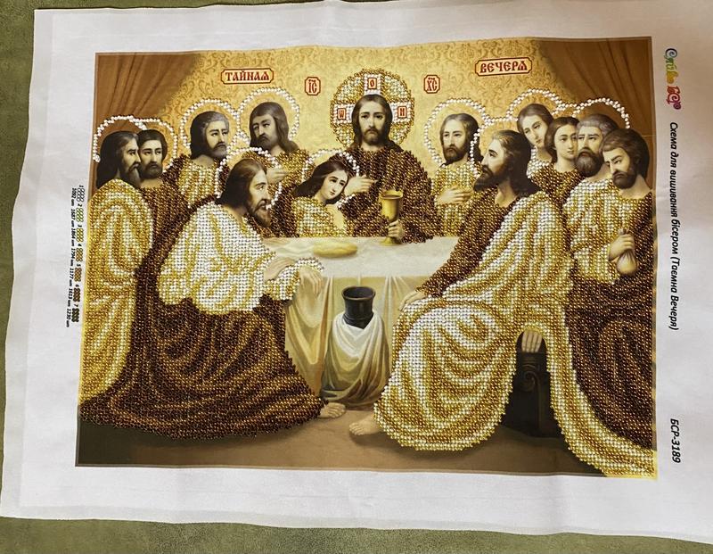 Ікони, вишиті чеським бісером, ручна робота. В наявності 9 варіантів. Ікона Таємна вечеря у розмірі 41х32 див. Є різні варіанти ікон в різних кольорах, різних розмірів!