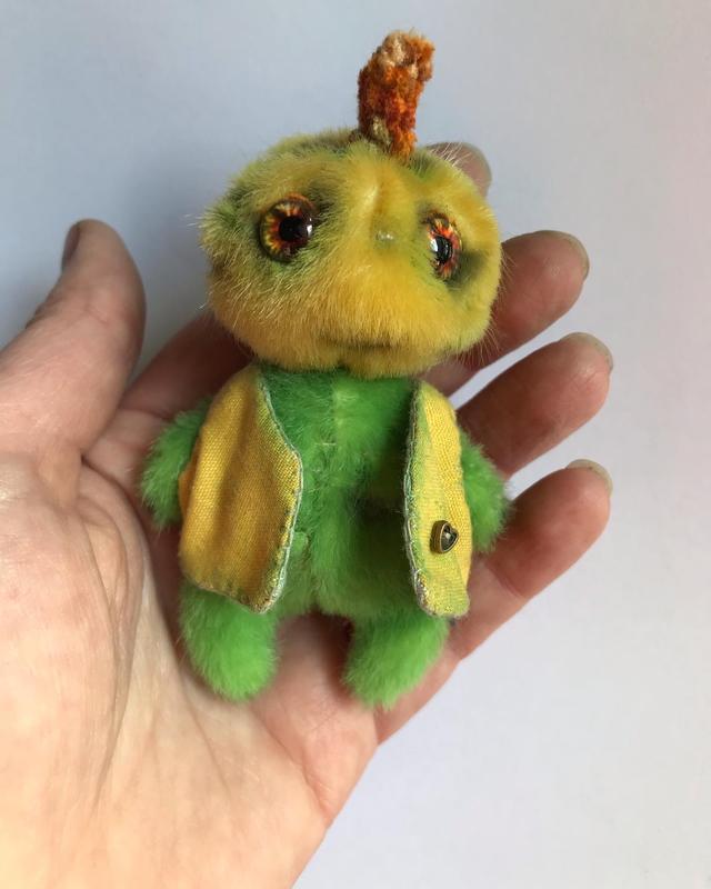 Мініатюра- ростом 9см. Очі скляні. Сам з штучного хутра.