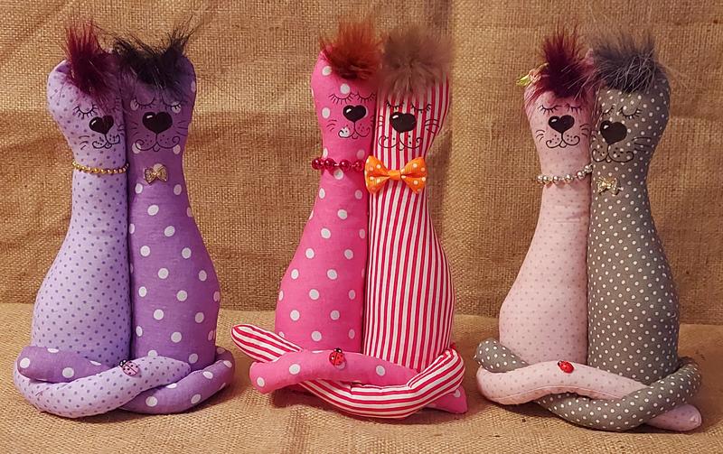 Текстильные котики неразлучники или обнимашки ручной работы выполнены из хлопковой ткани, наполнитель гиппоаллергенных синтепух. Высота котиков 22 см, ширина 12 см. Делаю по заказу в вторых цветах. Отличный подарочек до 8го Мартовня, друзьям на годовщину свадьбы.