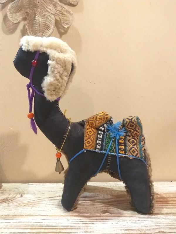Інтер'єрна лялька верблюд, натуральна шкіра та хутро, ручна робота.