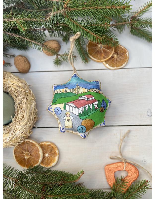 Запрошуємо вас в світ унікальних ручних робіт, де кожен сувенір - це не просто виріб, а справжня творча майстерність. Наш текстильний ароматизований сувенір "Зірка Маріупольський Драмтеатр" несе в собі дух міста та його символіку. Виготовлений вручну, кожен сувенір має в собі неповторний символізм та витончений ручний малюнок. Кожна зірка серії "Міста України" - це не просто прикраса, а втілення традицій та краси кожного міста України, що славиться своєю культурною спадщиною. Наша команда надає особливу увагу кожній деталі, щоб зробити кожен сувенір неповторним. Купуючи текстильний сувенір "Зірка Маріупольський Драмтеатр", ви не тільки отримуєте вишукану прикрасу, але й підтримуєте розвиток майстерності та української спадщини ручної роботи. Поглибтеся у витончений світ декору та виберіть символ свого улюбленого міста, що принесе вам натхнення та незабутні враження. Наші сувеніри - це більше, ніж просто вироби. Вони - втілення душі та тепла рук майстрів, які з любов'ю творять кожен екземпляр. Зірочки цієї колекції ілюструють історичну спадщину різних міст України, пошиті з натуральних тканин, наповнені синтепоном, розписані вручну тернопільськими майстрами та покриті розчином ванілі, аромат якого зберігатиметься до 6 місяців. Розмір зірочки: 13*13*6 см