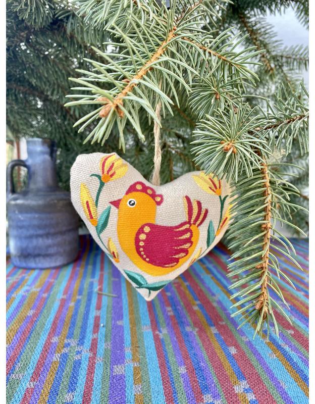 Колекція створена тернопільськими майстрами. Серця пошиті з натуральної тканини, покриті розчином ваніліну, аромат іграшки зберігається приблизно півроку. Етно розписи виконані вручну. Розмір іграшки:12х11х4,5см.