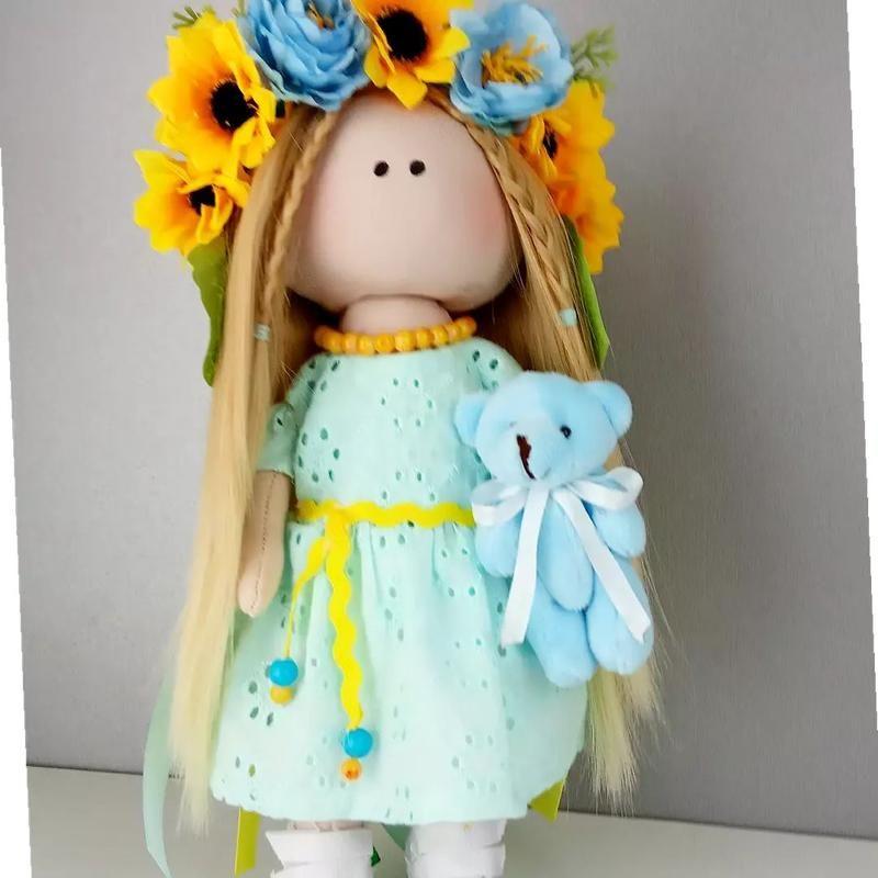 Сучасна інтер'єрна лялька в патріотичних кольорах 💙💛. У віночку, в який вплетені квіти соняшника 🌻🌻🌻 🔥