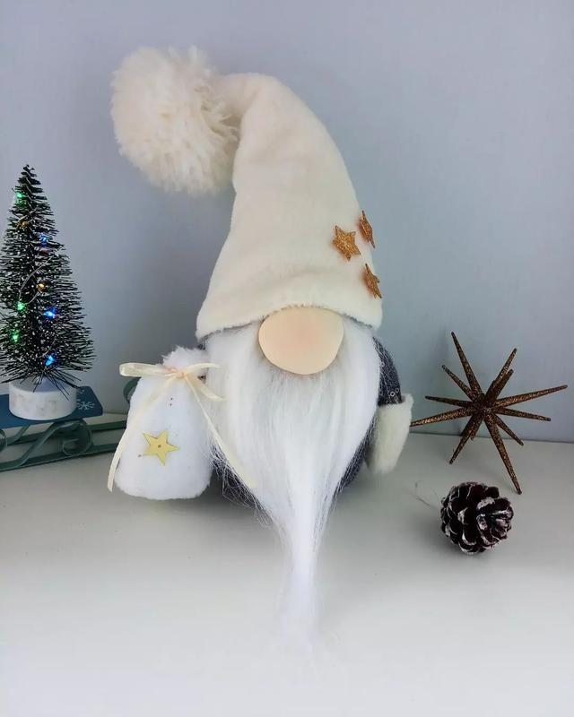 Мякенький, пухнастий гномик! Шапочка молочного цвета. Рост 30 см, пока свободный. Ищет дом 🏘️.